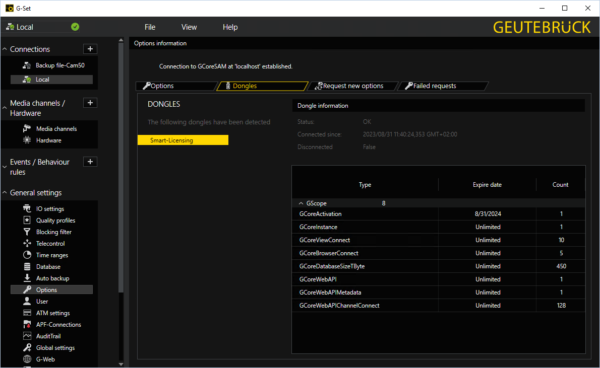 All identified dongles are displayed on this tab. In our case, a Smart Licensing dongle was found. If a dongle is clicked on, all information about this dongle is read out.