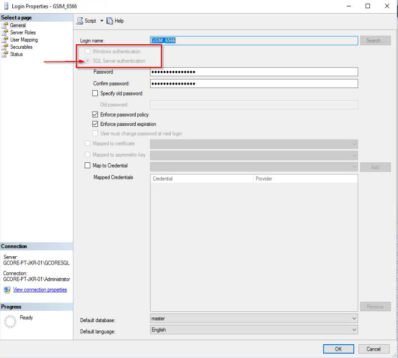 Now the user GSIM_6566 is created with SQL Server authentication.