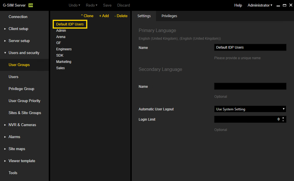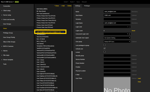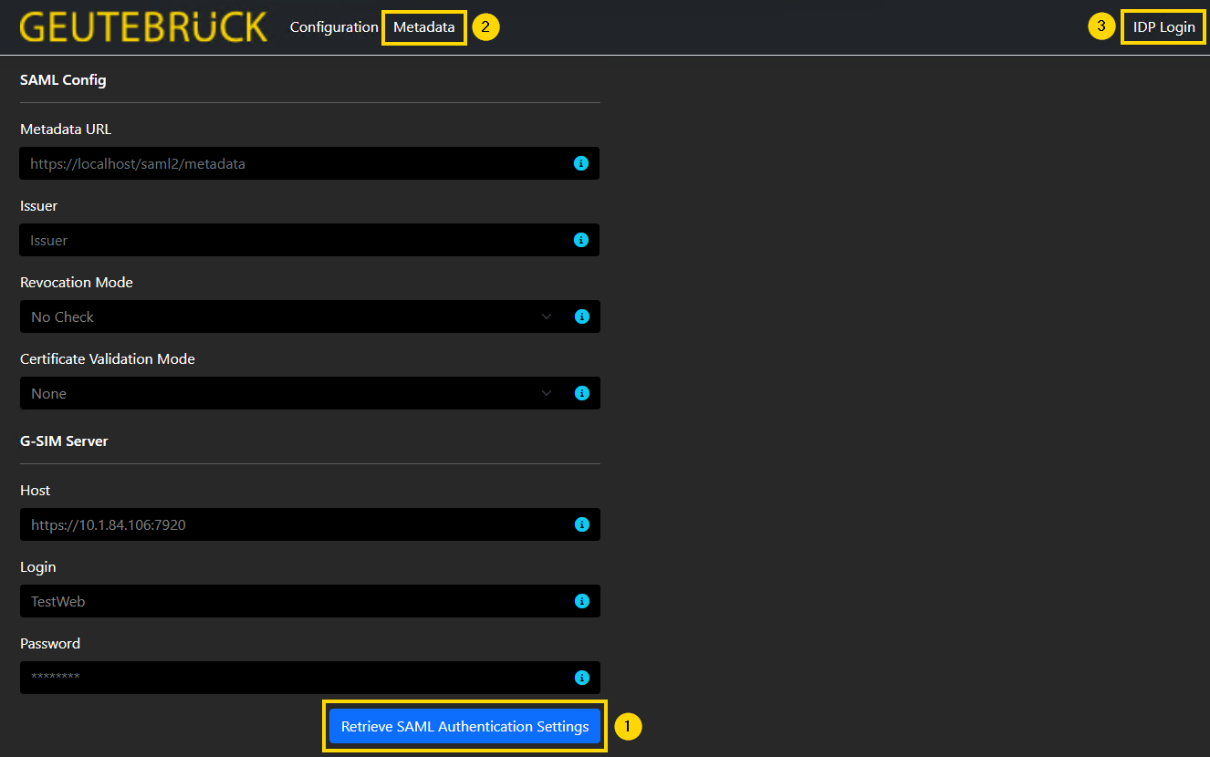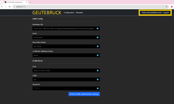 External Login - Login to the G-SIM server with SAML user credentials.