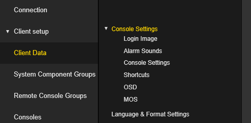 Client Data contains a set of settings that are used to customize the Operator Console.