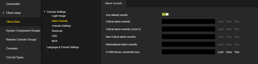 The administrator can configure sounds to be played in the Operator Console when an alarm is received.
