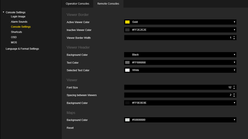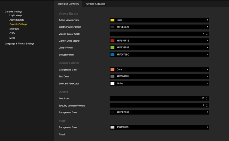 The administrator can configure visual settings that will be applied to the viewers in the Operator Consoles and Remote Consoles.