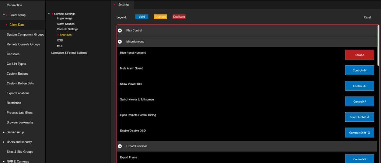The administrator can configure shortcuts to be used in the Operator Console to perform different actions.