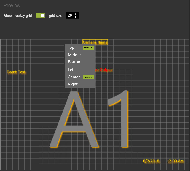 The Show overlay grid option can be used to simplify the positioning and alignment of text labels.