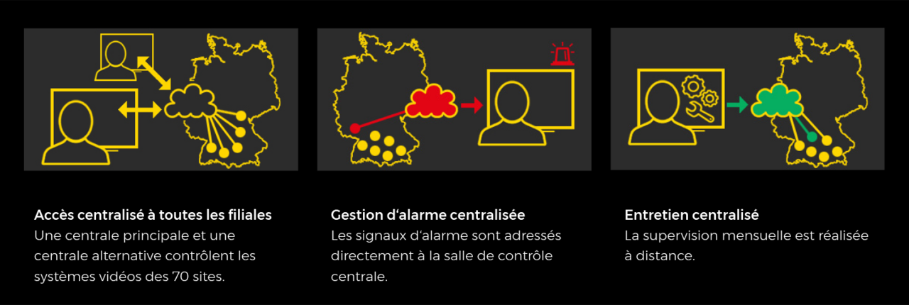 Le client souhaite un renforcement significatif des mesures de surveillance vidéo ainsi qu‘un aperçu central des 70 sites.