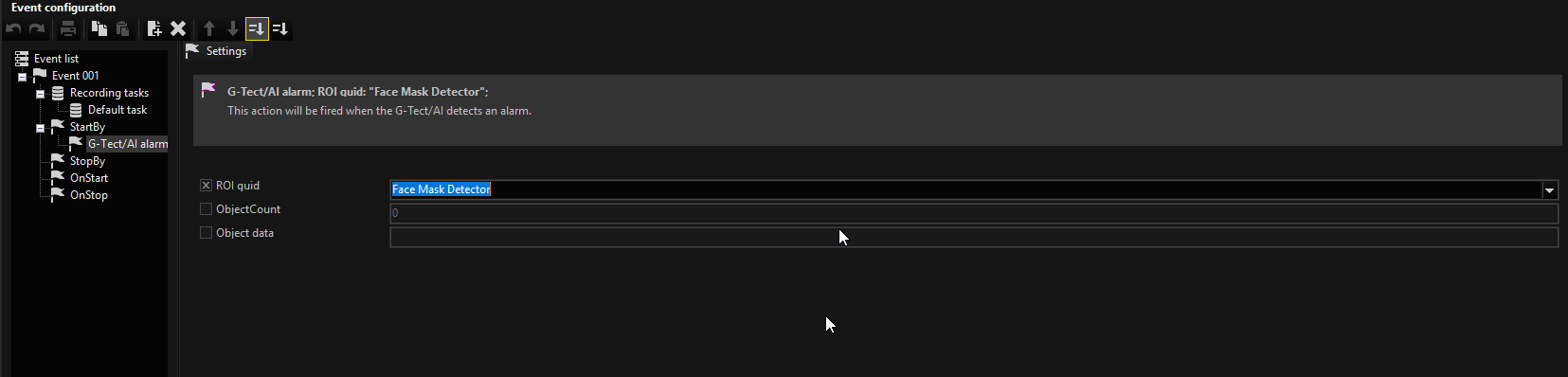 Die Detection list (Erkennungsliste) unterstützt die Konfiguration, indem sie die Erkennungen entsprechend den aktivierten Objektklassen und der Logik innerhalb der ROI anzeigt. So können Alarmmeldungen bereits im G-Set verifiziert werden.