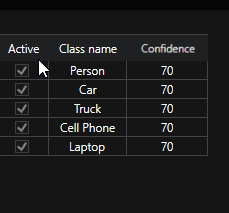 Das Häkchen bestimmt, ob eine Klasse zur weiteren Analyse oder zur Alarmweiterleitung verwendet wird. |