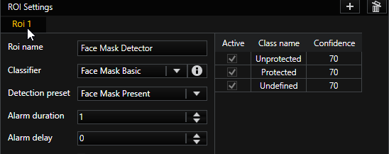 Fügt eine ROI (=Region von Interesse) hinzu. Dieser Bereich wird für die Alarmauswertung verwendet und kann mit den weiteren Einstellmöglichkeiten an die spezifischen Anforderungen angepasst werden. |