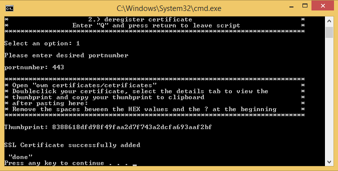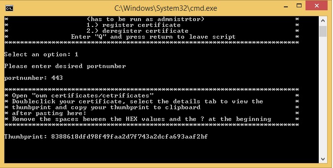 Now paste the copied HEX values in GCoreWeb_RegisterSSLCerificate.bat.