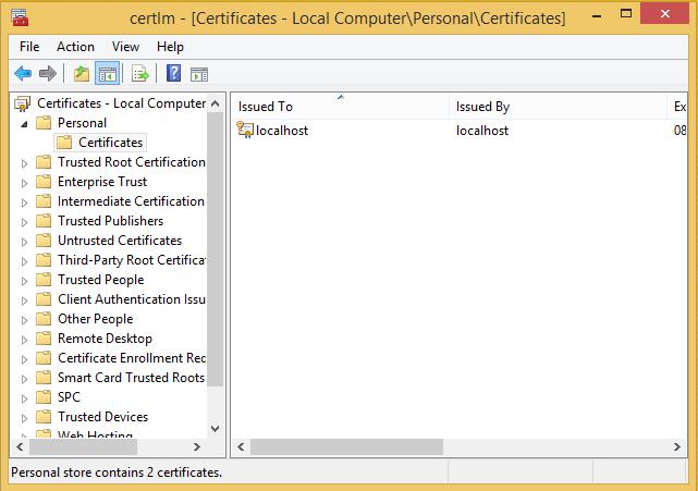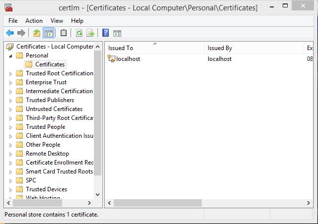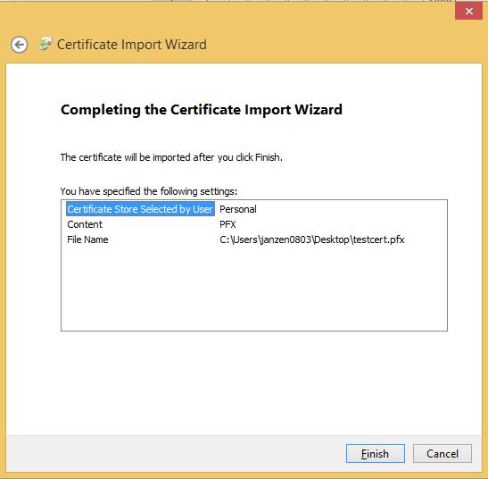 Click Finish to complete the installation. The certificate should now be shown in the Certificate Manager under My Certificates/Certificates.