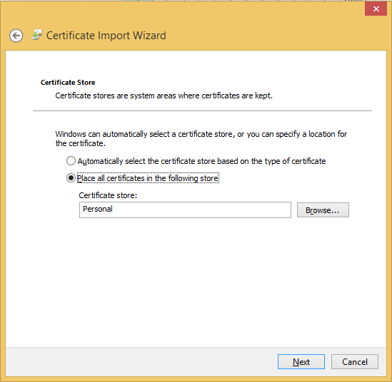 At the end, the folder must be selected where the certificate will be saved. Place all certificates in the following store should be selected. By default, My certificates is then entered. If this is not the case, it should be modified accordingly.