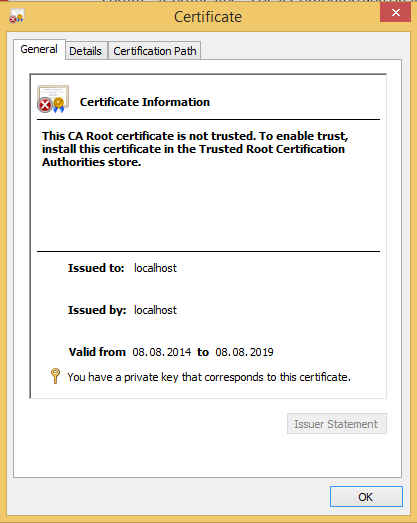 Under My Certificates/Certificates (see above under Installation), double click the certificate to be signed. The Properties window of the certificate opens.