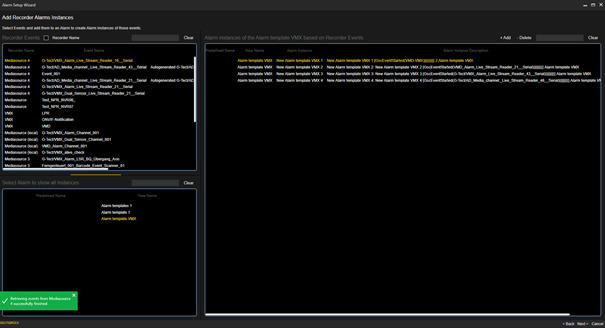 In the Add Recorder Alarms Instances dialog window, you can create alarm instances based on recorder events.