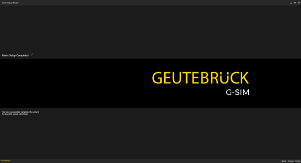 When you have finished the configuration, the last page of the wizard opens. Click the Finish button to close the wizard and apply the changes made to the current G-SIM setup.