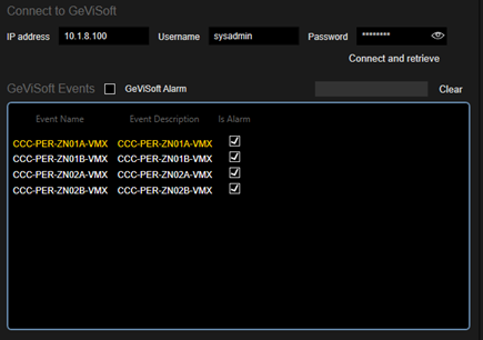 2. Filter the GeViSoft Events list for the events or alarms you want to add to the list of alarm instances.