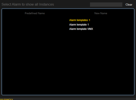 The Select Alarm to show all instances list contains all configurable alarm templates.
