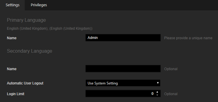 With the Login Limit you can set the number of allowed logins for the Operator Console user. If the number of allowed logins is exceeded, the login will fail and the user receives a notification that the number of allowed logins has been reached. The value 0 means an unlimited number of available logins. |
