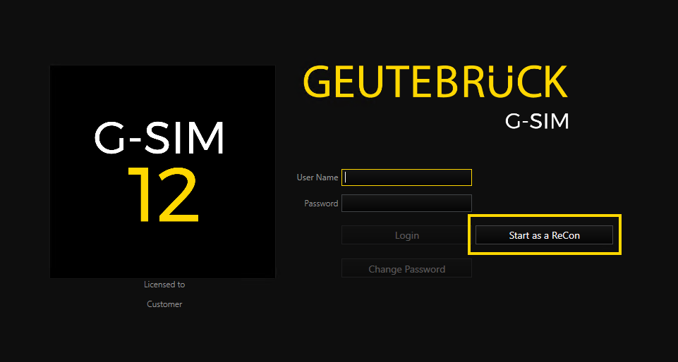 For further Operator Consoles and Remote Consoles it is possible to start them in the flexible ReCon mode to be able to control them from your controlling console. Instead of entering the credentials to log in, you use the Start as a ReCon button.