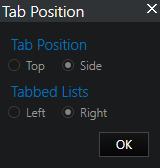 In the toolbar, click on the adjacent arrow of the Tabbed Lists button. The Tab Position window opens.