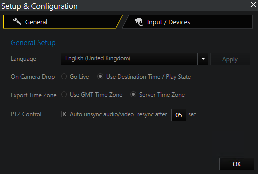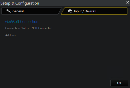 Under the Input / Devices tab, the GeViSoft connections are displayed. They are only displayed if you have installed devices such as an MBeg controller or GeViSoft.