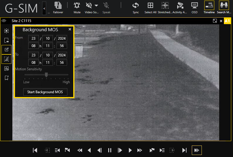 6. Select a start and end date and time of the Background MOS and set the Motion Sensitivity.