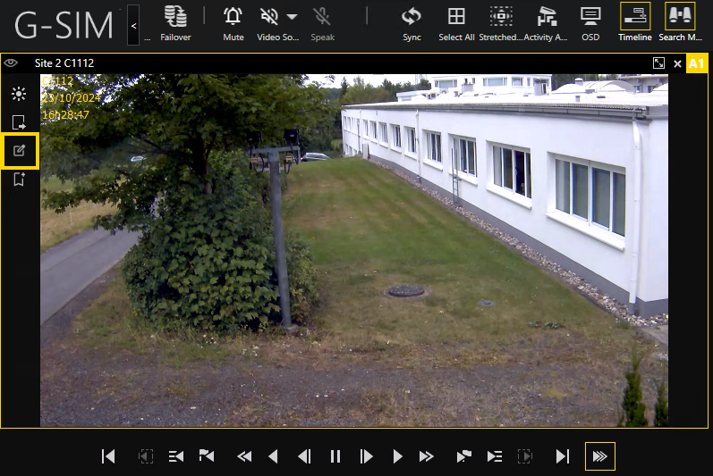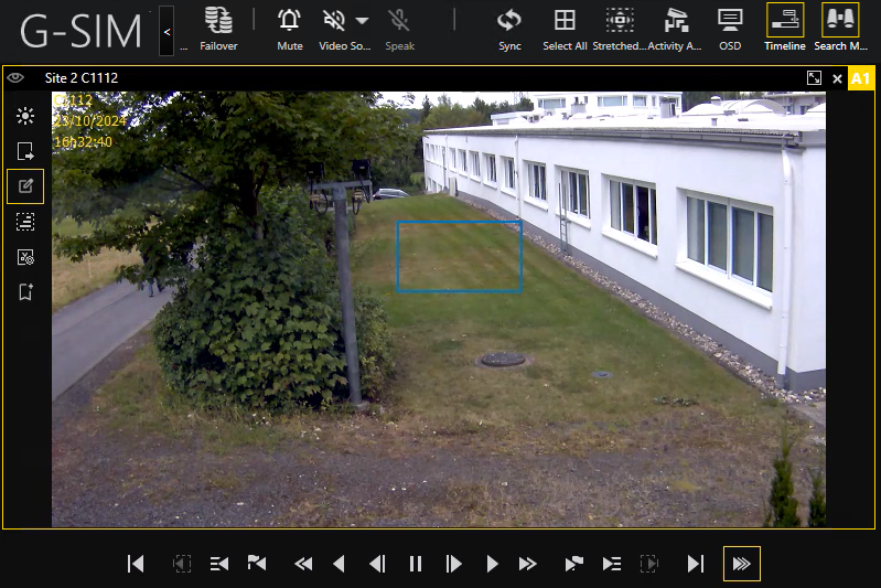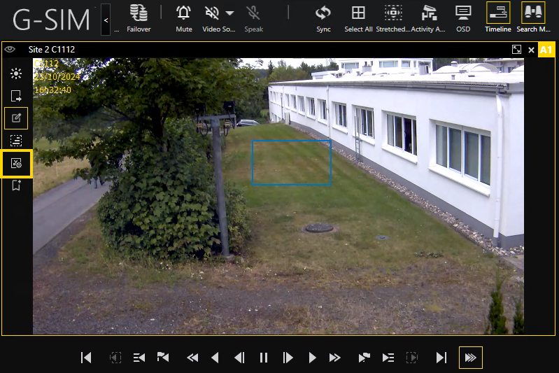 With MOS Live, you can detect motions in live images. Define a rectangle as an area in which motions are detected. When there is a motion, the rectangle gets another color and, if enabled, there is a brief sound. Additionally, an automatic MOS cut list with the detected motions can be created. With the respective control icon you can jump back to the previous detected motion.