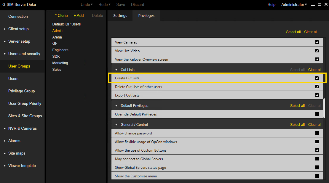 3. Under Cut Lists, enable the privilege Create Cut Lists.