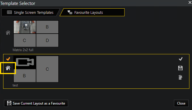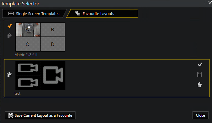 To delete a favorite layout or to save your configurations, select the layout and use the respective icon on the right.