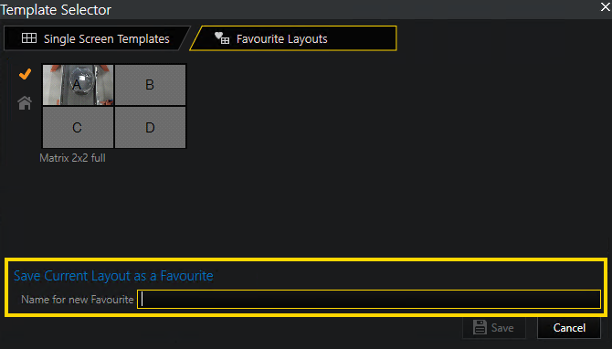 2. Enter a name and click on the Save button. The layout is now listed under the Favourite Layouts tab.