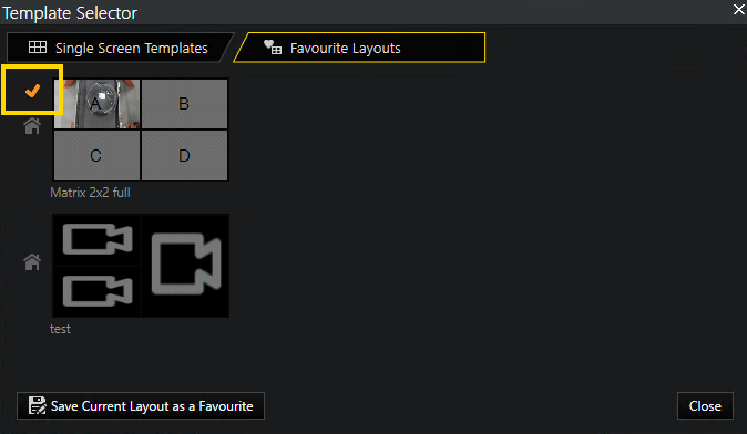 If there are various favorite layouts, the orange Currently Applied checkmark indicates which layout is currently used.