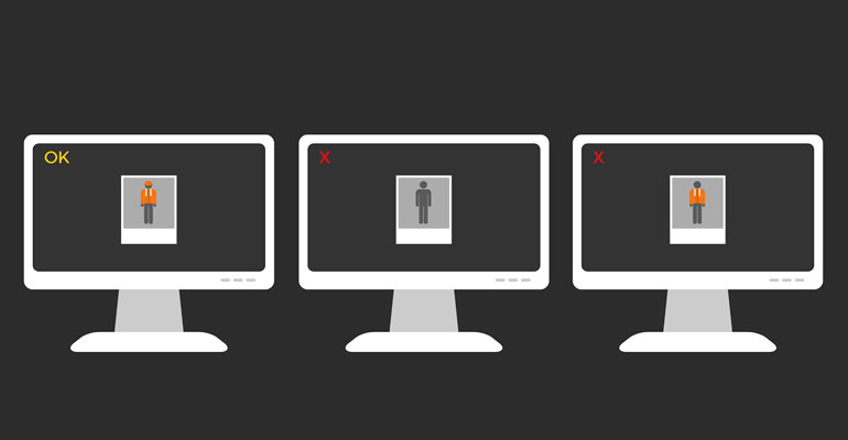 The algorithm-based optical recognition identifies, for example, the person wearing a safety vest together with a helmet. The system recognizes the complete protective clothing and only then allows access to an area in which the corresponding protection is mandatory. If one of the two components is missing, access is not granted. This visualization ensures that legal and operational protection regulations are complied with and significantly improves work safety.