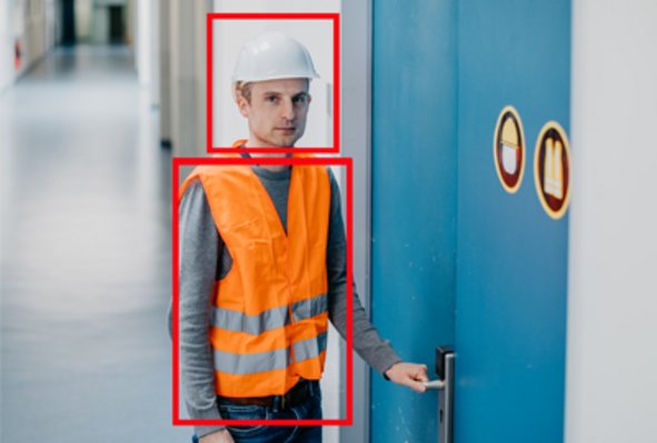 The development of the new strategic software platform is progressing and the initial, highly interesting results once again set new benchmarks — this time, in the identification of objects in video images using artificial intelligence. The first project undertaken improves safety at work by detecting whether a person is wearing the required PPE (personal protective equipment) correctly before opening the door. The solution can be used to control access to areas where special protective clothing is required, e.g. in industry, in laboratories or in clean rooms, for example to reduce accidents at work.