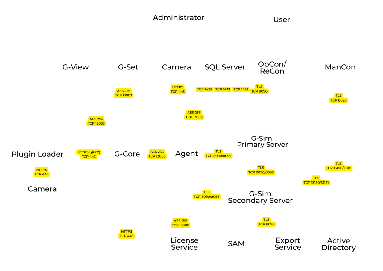 - Server & Client Communication: The communication between G-Core servers, the Software Asset Management Service (SAM), G-View Clients, and G-SIM (Agents and OpCon/ReCon Clients) is encrypted using the Advanced Encryption Standard (AES) with a 256-bit key size. The key exchange is managed by the secure Diffie-Hellman (DH) method.